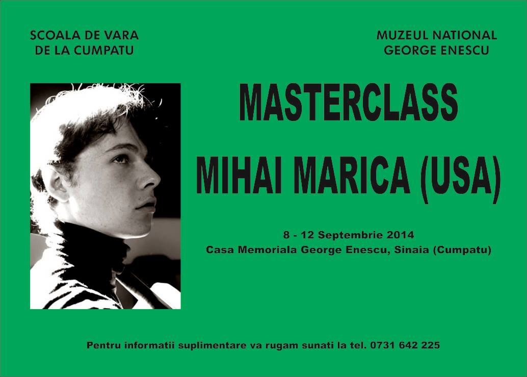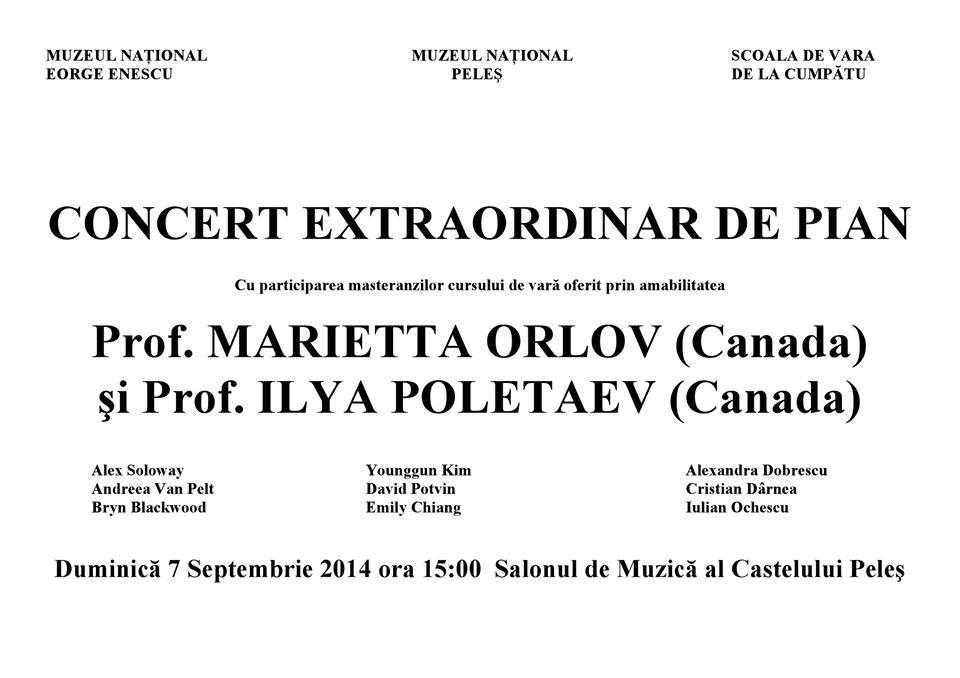 - Masterclass in colaborare cu renumita profesoara, doamna MARIETTA ORLOV (Conservatorul din Toronto) in colaborare cu CASA MEMORIALA "George Enescu" (Vila "luminis") de la Sinaia (2013).